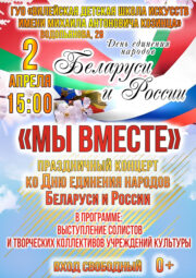 Приглашаем на концерт2 апреля в ГУО «Вилейская детская школа искусств имени Михаила Антоновича Козинца» (адрес — Водопьянова, 29) пройдёт праздничный концерт ко Дню единения народов Беларуси и России. Начало в 15:00. В программе выступление творческих коллективов учреждений культуры. Вход свободный,...