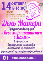 Запрашаем на святочны канцэрт да Дня маціДарагія вілейчане і госці нашага горада! Запрашаем вас на святочны канцэрт да Дня маці, які адбудзецца 14 кастрычніка ў Вілейскім гарадскім Доме культуры. Пачатак у 16.00. Уваход вольны, 0+. Прыходзьце, чакаем...