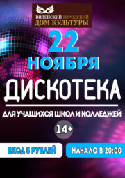 Приглашаем на дискотеку22 ноября Вилейский городской Дом культуры ждёт юношей и девушек на зажигательную дискотеку 14+! Начало в 20:00! Вход — 5 рублей! Приходите, будет...